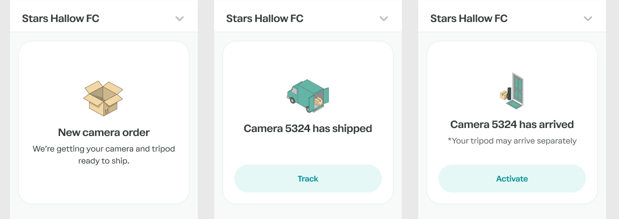 Once your camera ships, you can track it in the cameras tab on your Trace teams app